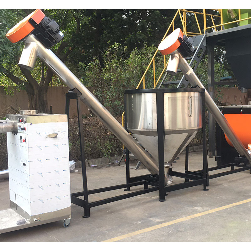 將PET塑料瓶料輸送至脫標(biāo)機入料口,脫標(biāo)機身前部有一段螺旋推送,將......